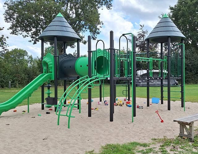 Kinderen kunnen hier heerlijk hun energie kwijt op het springkussen en andere speeltoestellen.